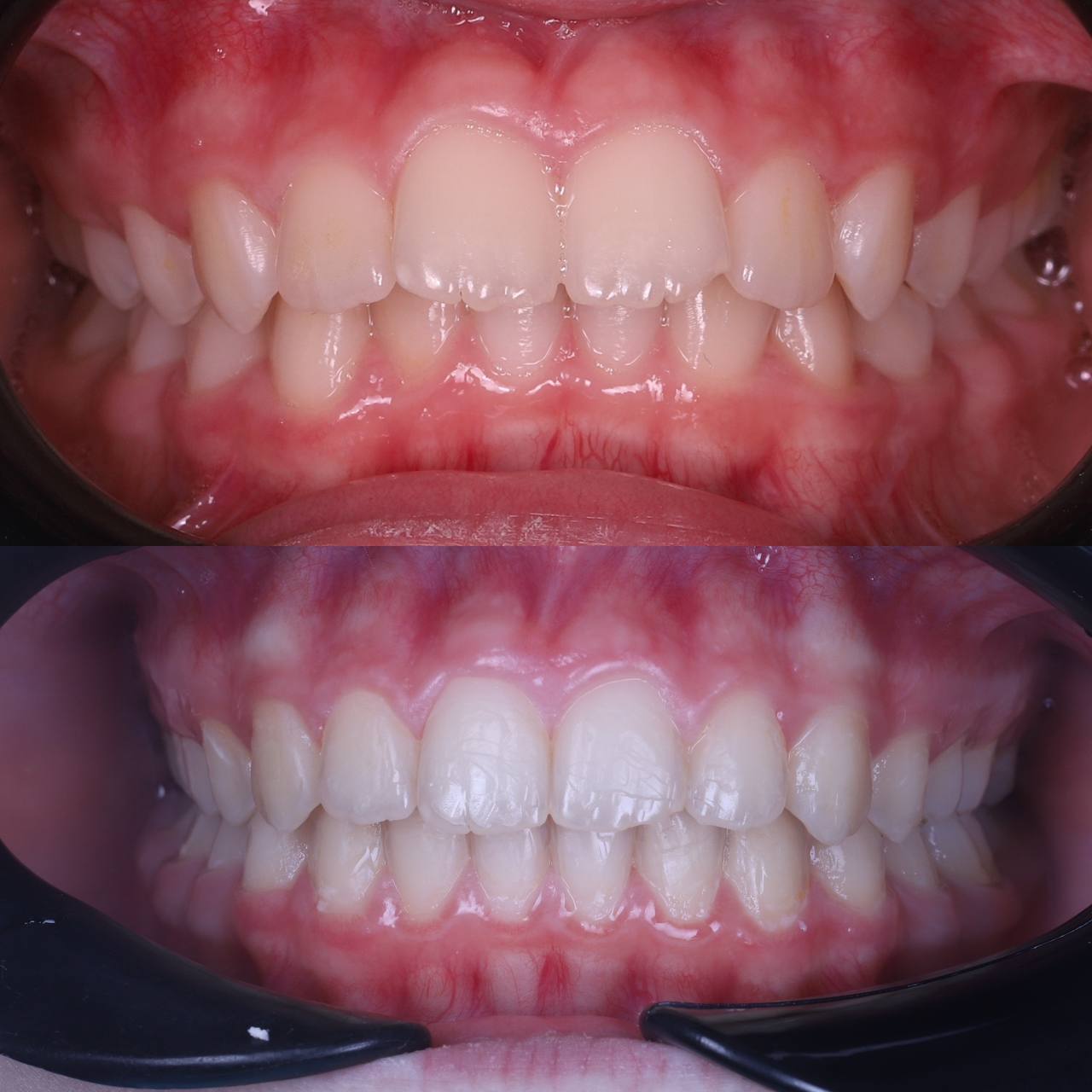 Еще один сложный случай. Попали в пик роста. Вылечили 2 класс, убрали сагиттальную щель и глубокий прикус. Получилось вылечить чисто за счет брекетов и эластических тяг. Пациентка умница, выполняла все рекомендации врача.